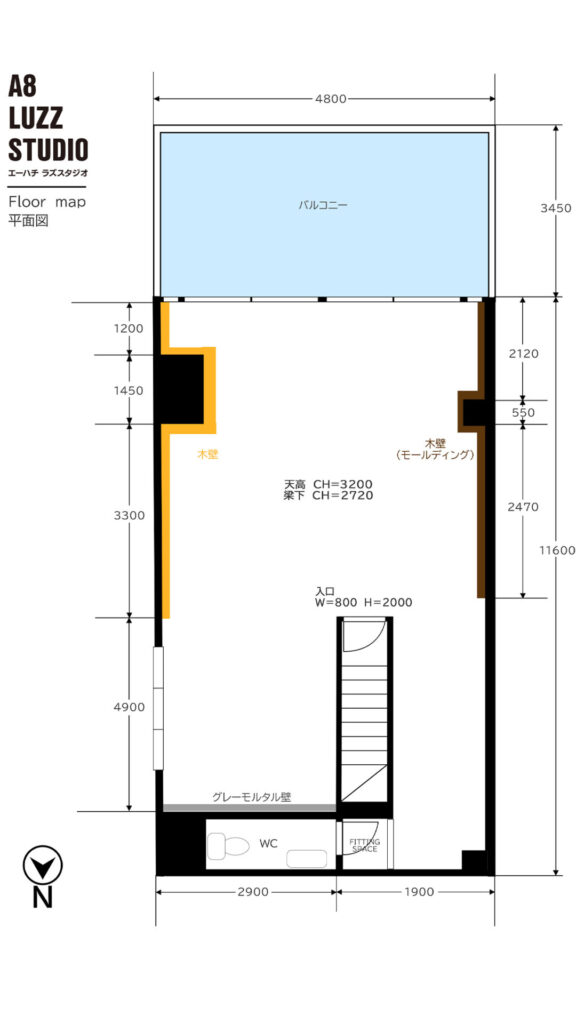 大阪南堀江の撮影スタジオ・エーハチラズスタジオ北側のモルタル壁の写真