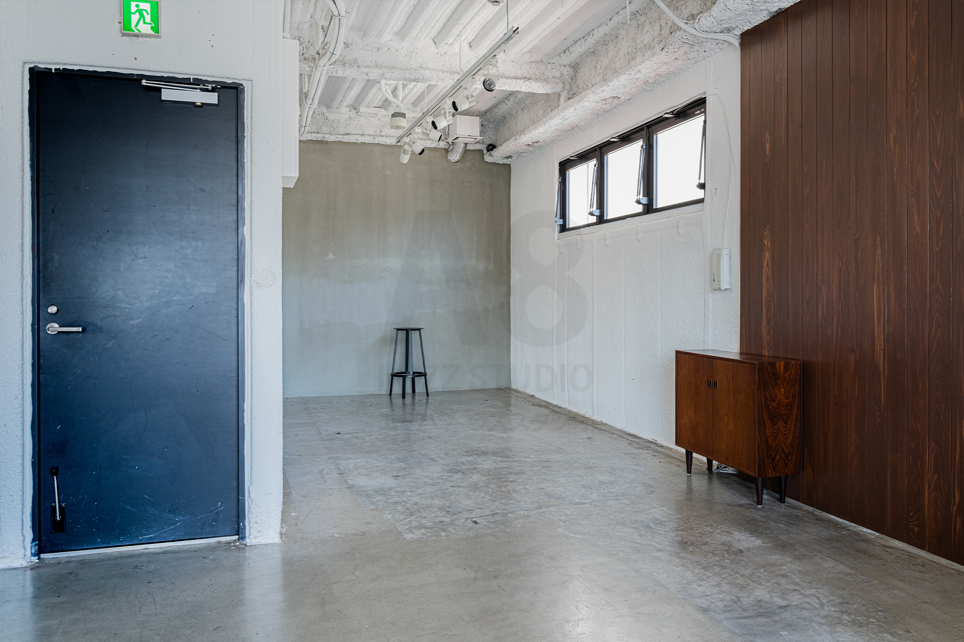 大阪南堀江の撮影スタジオエーハチラズスタジオの東の壁と家具の写真